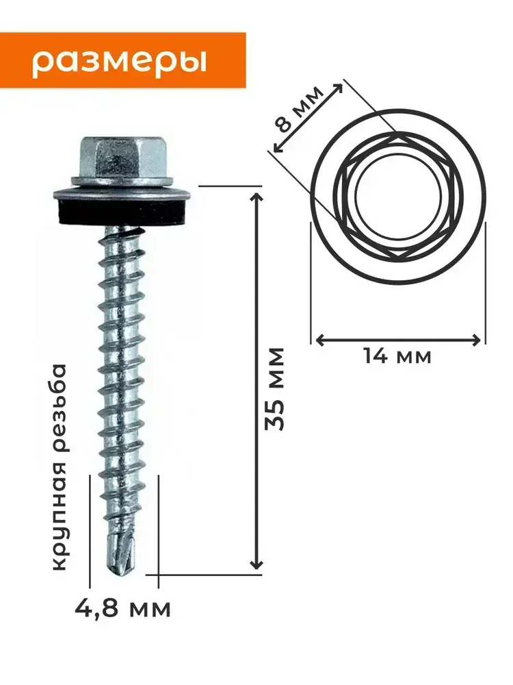 Саморез 4.8 x 35 мм 250 шт. 1.32 кг.