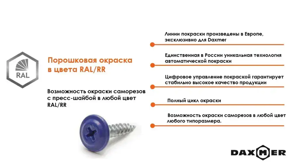 Саморез Daxmer 4,2х41 усиленный с прессшайбой острый премиум цинк (250 шт)