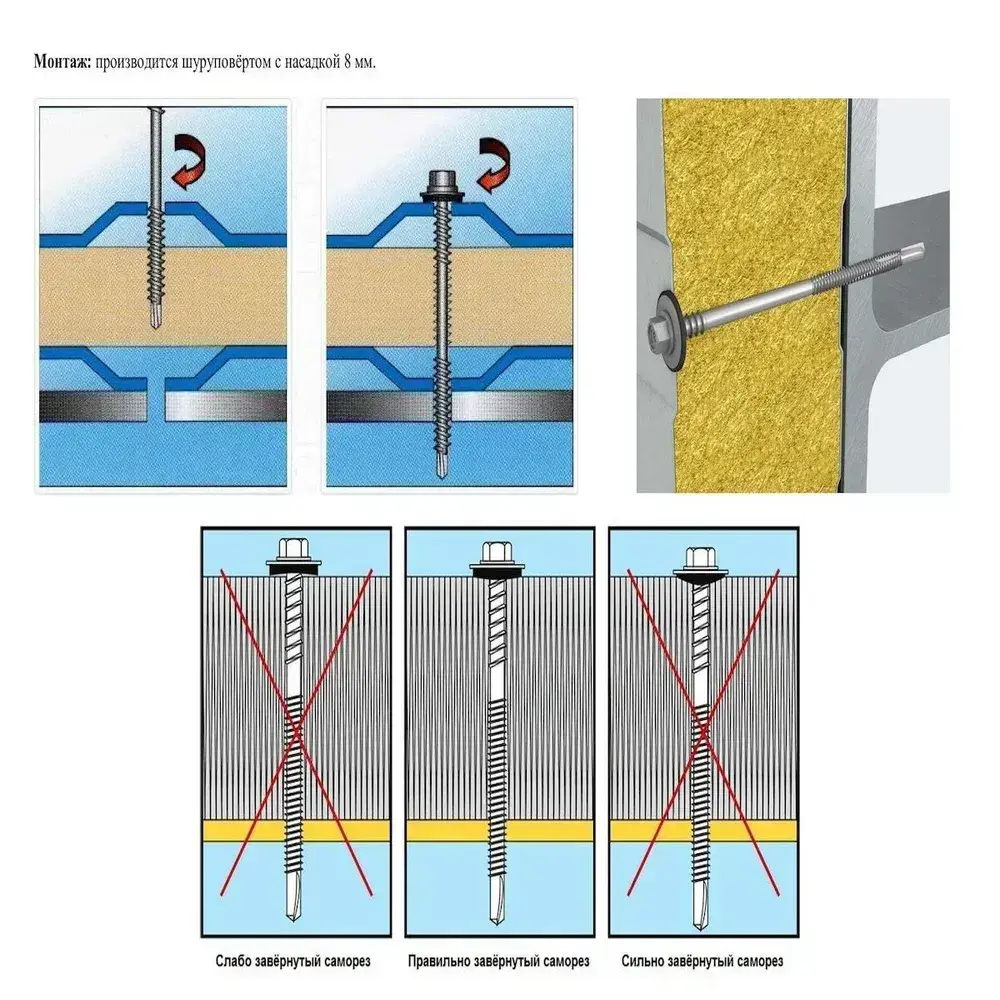 Саморез для сэндвич-панелей 6,3 / 5,5 х 185 (100 штук)