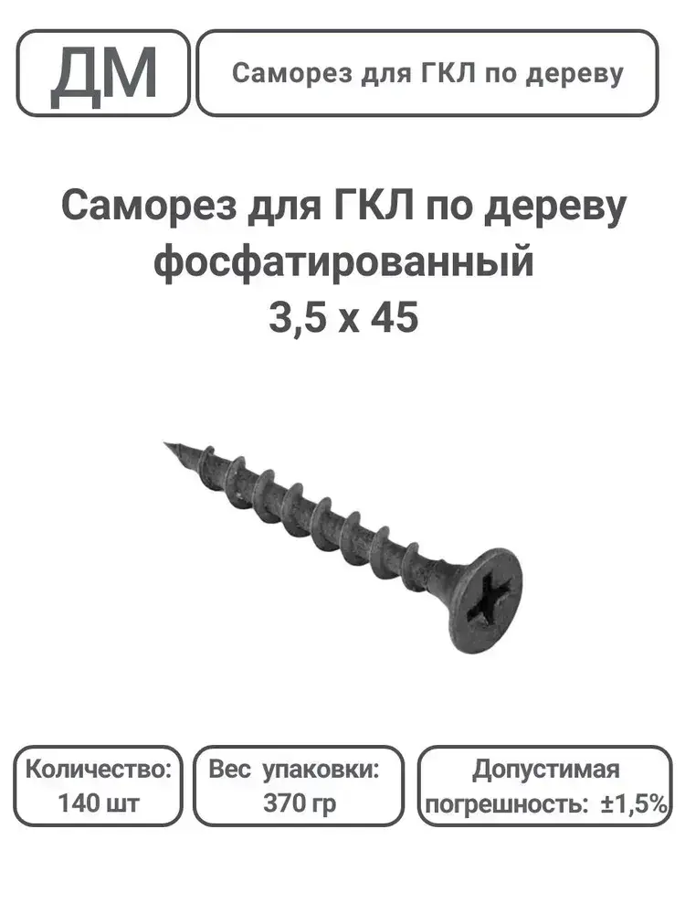 Саморез ГКЛ - дерево фосфатированный 3,5х45 140