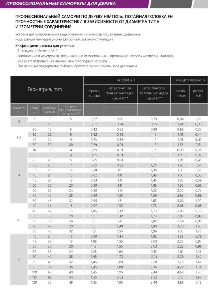 Саморез конструкционный по дереву 4,5*35 HIMTEX потайной