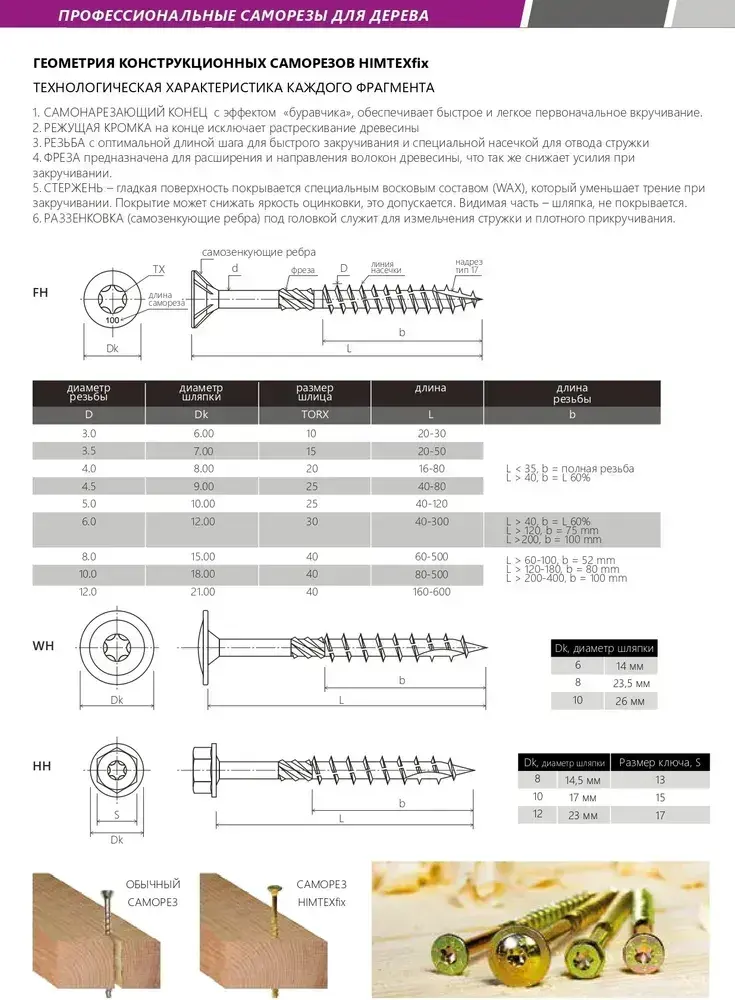 Саморез конструкционный по дереву 8*160 HIMTEX прессшайба