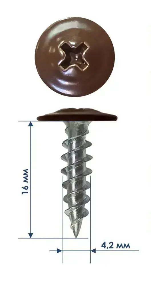 Саморез крашенный прессшайба 4,2х16 мм острый Шоколад RAL-8017 (100 шт).