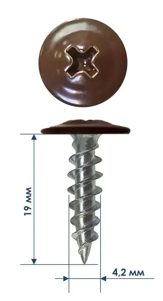 Саморез крашенный прессшайба 4,2х19 мм острый Шоколад RAL-8017 (100 шт) ЁЖкрепЁЖ.