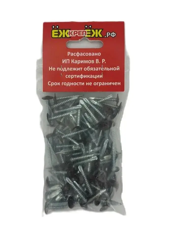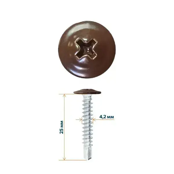 Саморез крашенный прессшайба 4,2х25 мм сверло Шоколад RAL-8017 (100 шт).