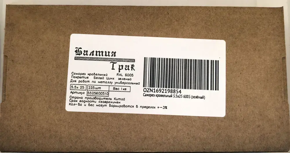 Саморез кровельный 5.5х25 6005 (зелёный) 1кг