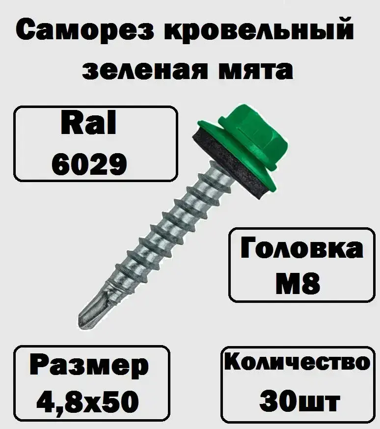 Саморез кровельный RAL6029 4,8х50 4,8х51 зеленая мята 30 штук
