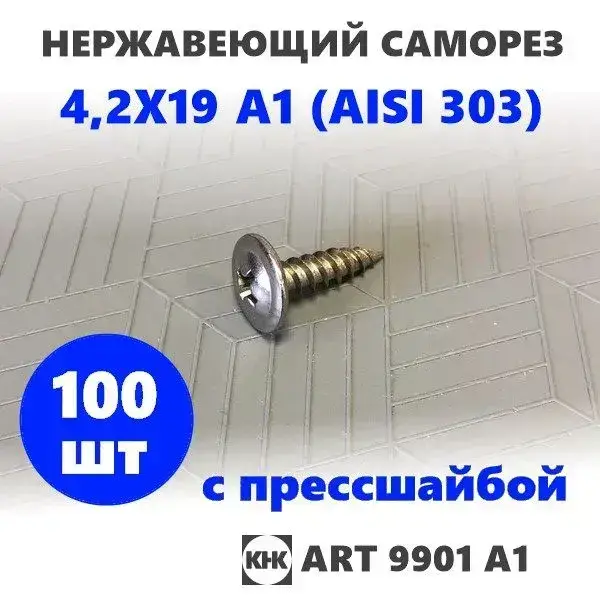 Саморез нержавеющий 4,2х19 с прессшайбой остроконечный КНК, нерж сталь, клоп Li, 100 шт.