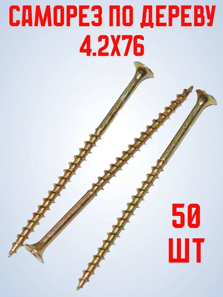 Саморез по дереву 4.2х76 мм желтый, 50шт.