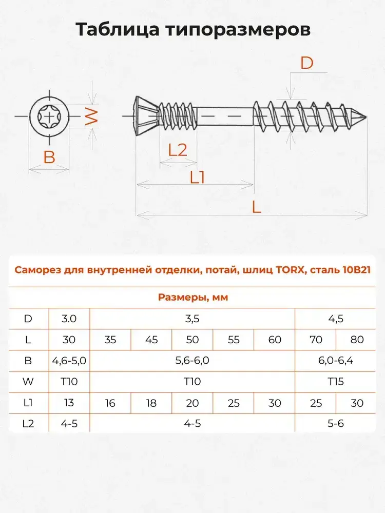 Саморез по дереву Гвозdeck (Гвоздек) для пола и внутренней отделки потайной 3.5*45 T10 с битой, 500 шт.