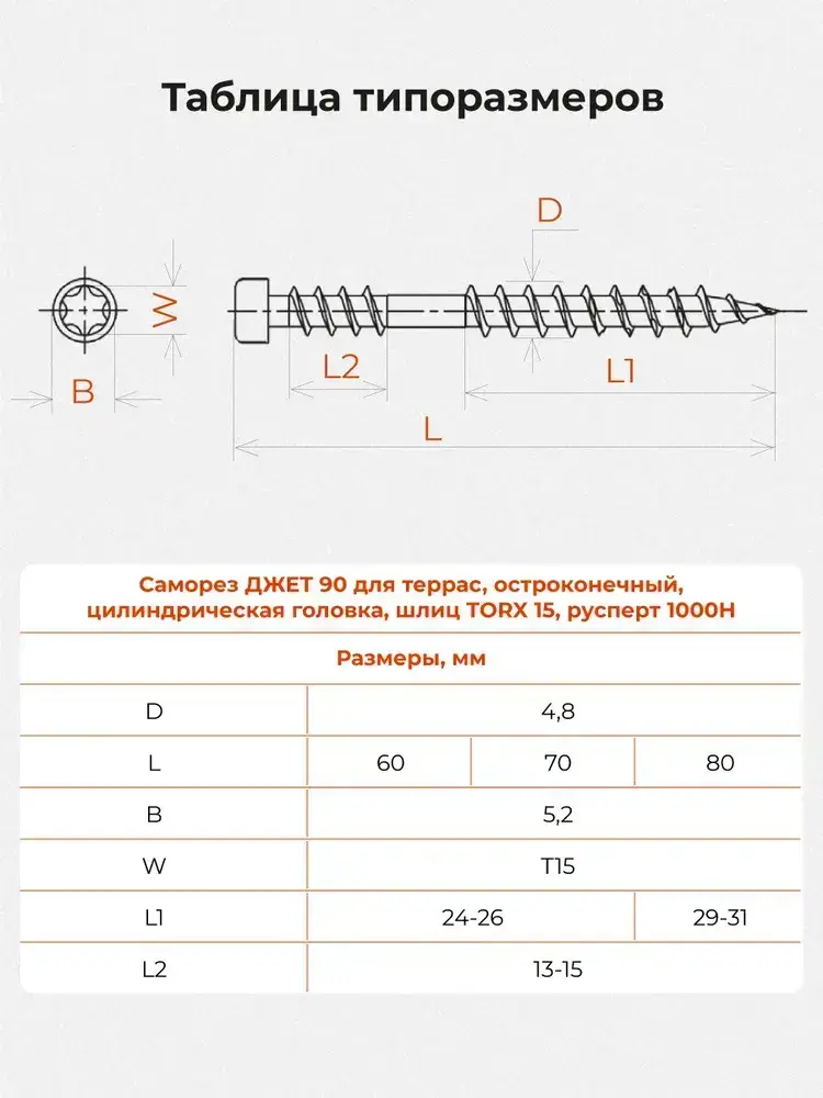 Саморез по дереву Gwozdeck для Террасной доски Потайной 5,0*70 Окрашенный Остроконечный Torx15 Упаковка 400 шт., подходит для ДЖЕТ 90