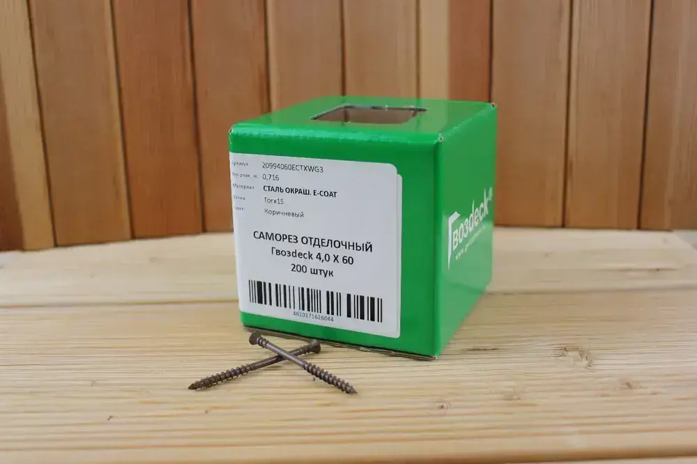 Саморез по дереву окрашенный для фасада 4.0*60 T15, потайной, Gwozdeck, отделочный, цвет коричневый, Упаковка 200 шт