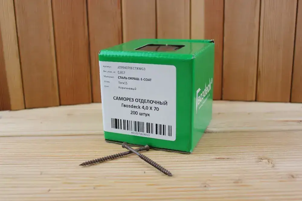 Саморез по дереву окрашенный для фасада, 4.0*70 T15, потайной, Gwozdeck, отделочный, цвет коричневый, Упаковка 200 шт