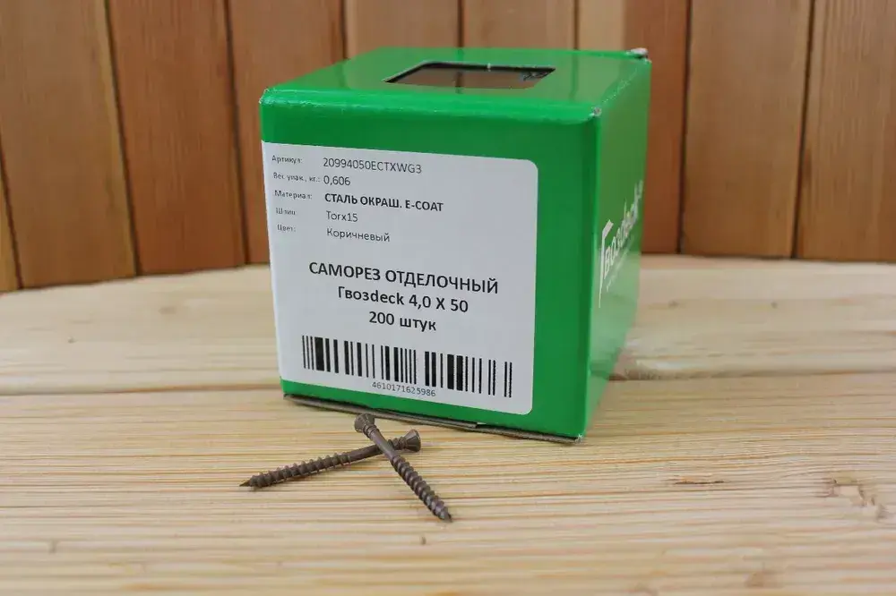 Саморез по дереву окрашенный для фассада 4.0*50 T15, потайной, Gwozdeck, отделочный, цвет коричневый, Упаковка 200 шт