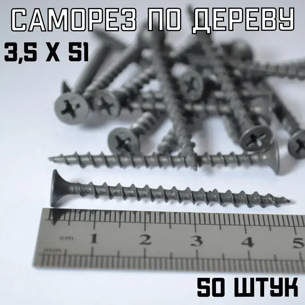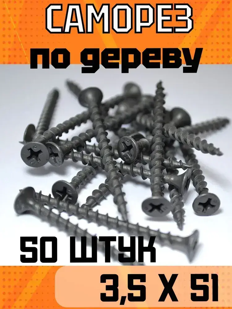 Саморез по дереву, широкая резьба, черный 3,5х51 (50 шт).