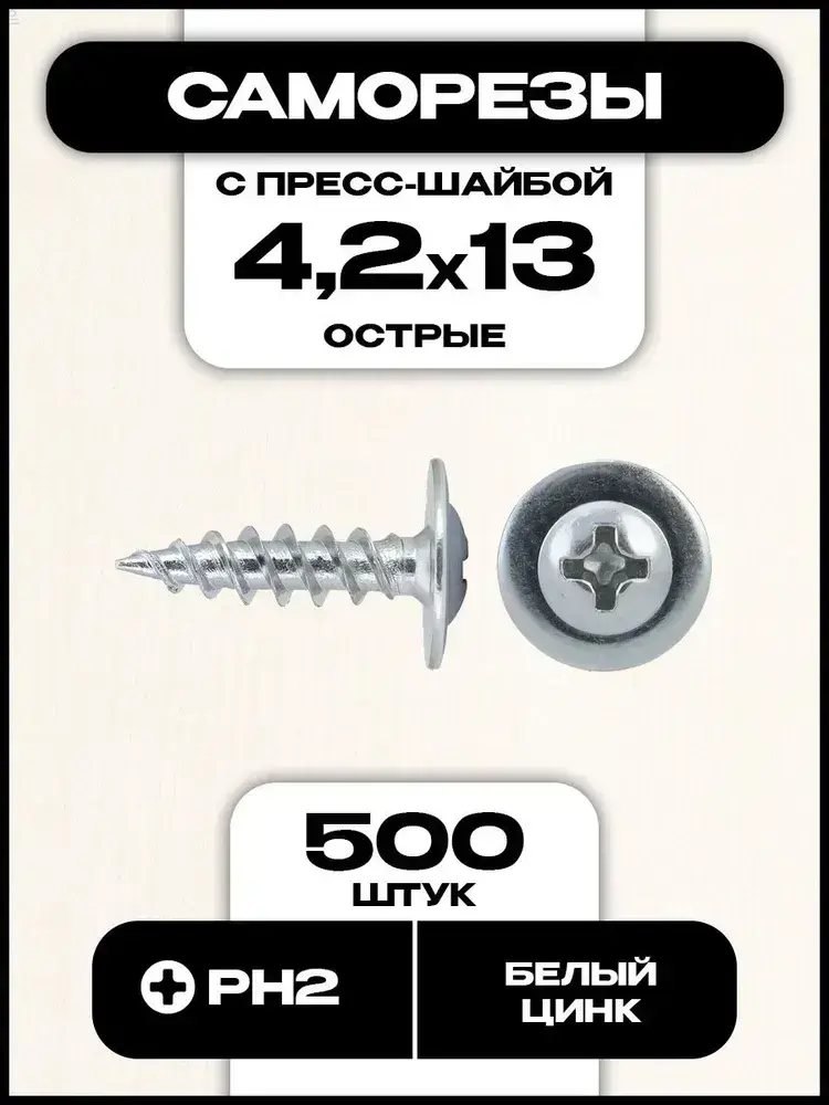 Саморез с пресс-шайбой, острый, 4,2х13 мм, 500 шт.