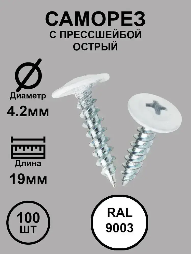Саморез с прессшайбой 4,2х19 белый RAL9003 острый 100шт.