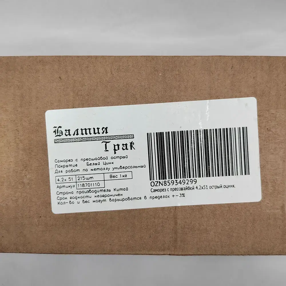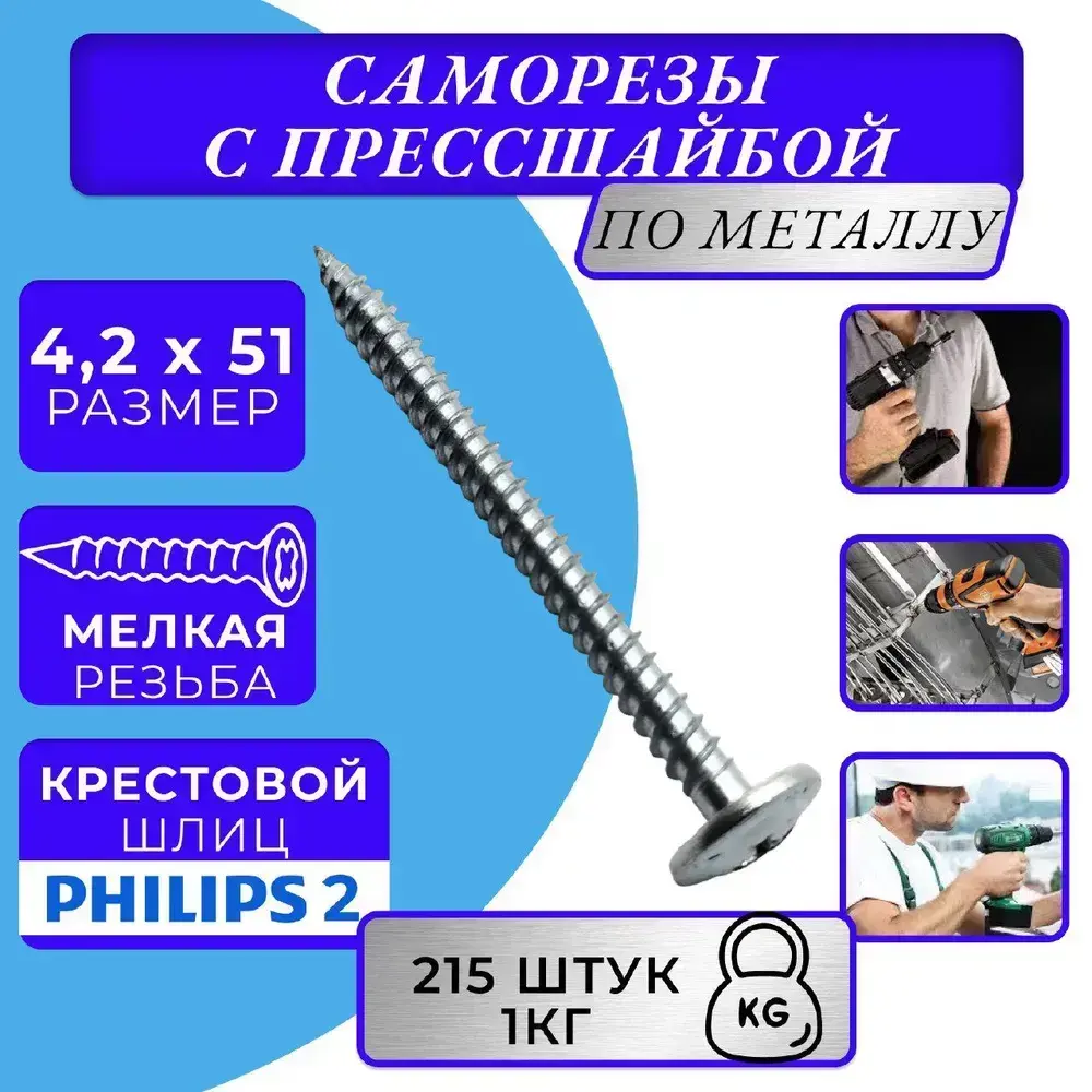 Саморез с прессшайбой 4.2х51 острый оцинк. 1кг