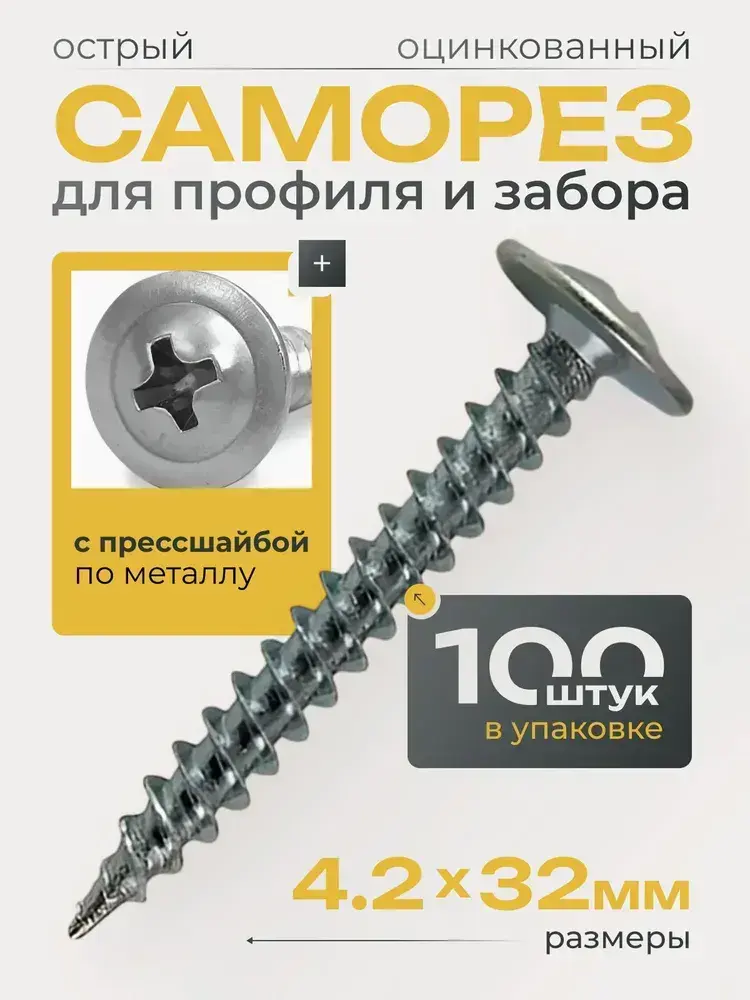 Саморез с прессшайбой острый 4,2*3,2 цинк 100 шт.