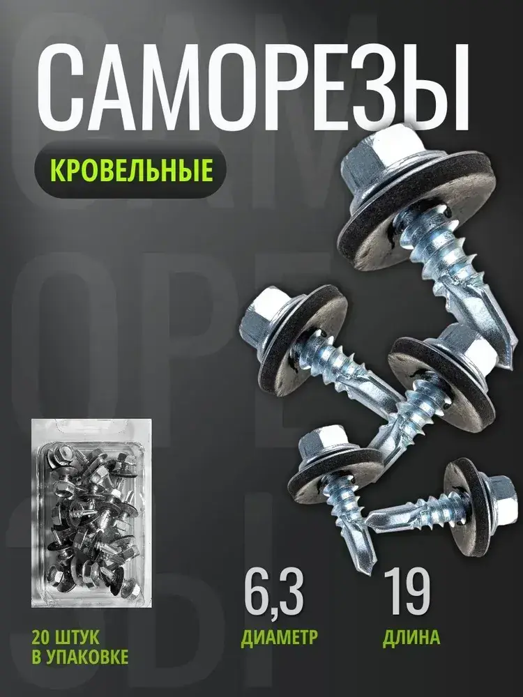 Саморезы 6,3х 19 кровельный цинк сверло (20шт)