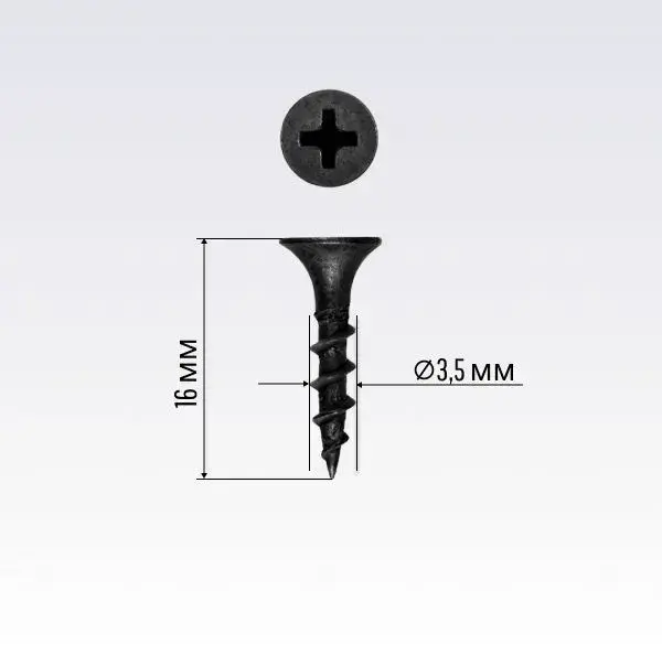 Саморезы черные 3,5х16 мм (50 шт) шурупы по дереву ГД гипсокартон-дерево