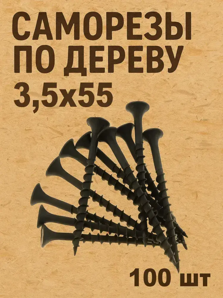 Саморезы черные 3,5х55 мм шурупы по дереву, гипсокартону 100шт