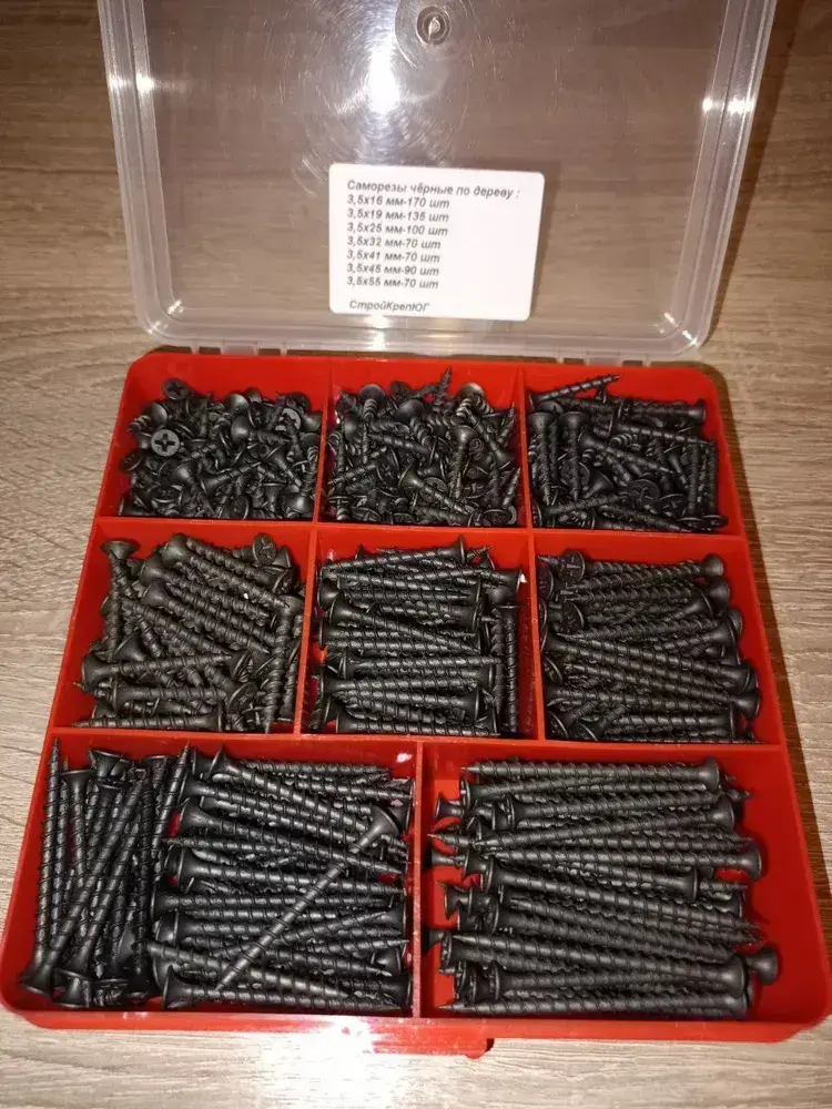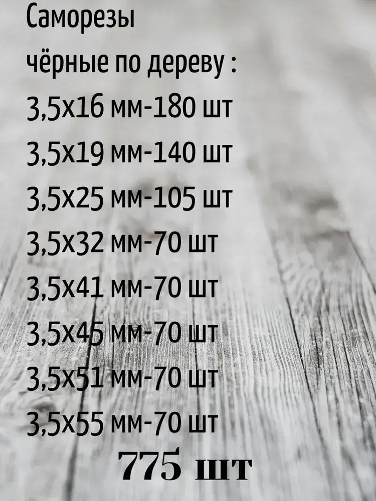 Саморезы чёрные по дереву в кейсе (775 шт.)