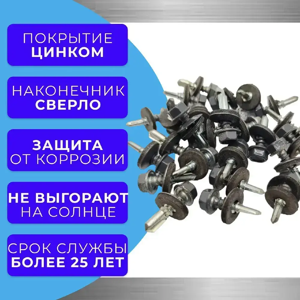 Саморезы кровельные по металлу 5.5х19 RAL 7024 (Графитовый серый) 1кг