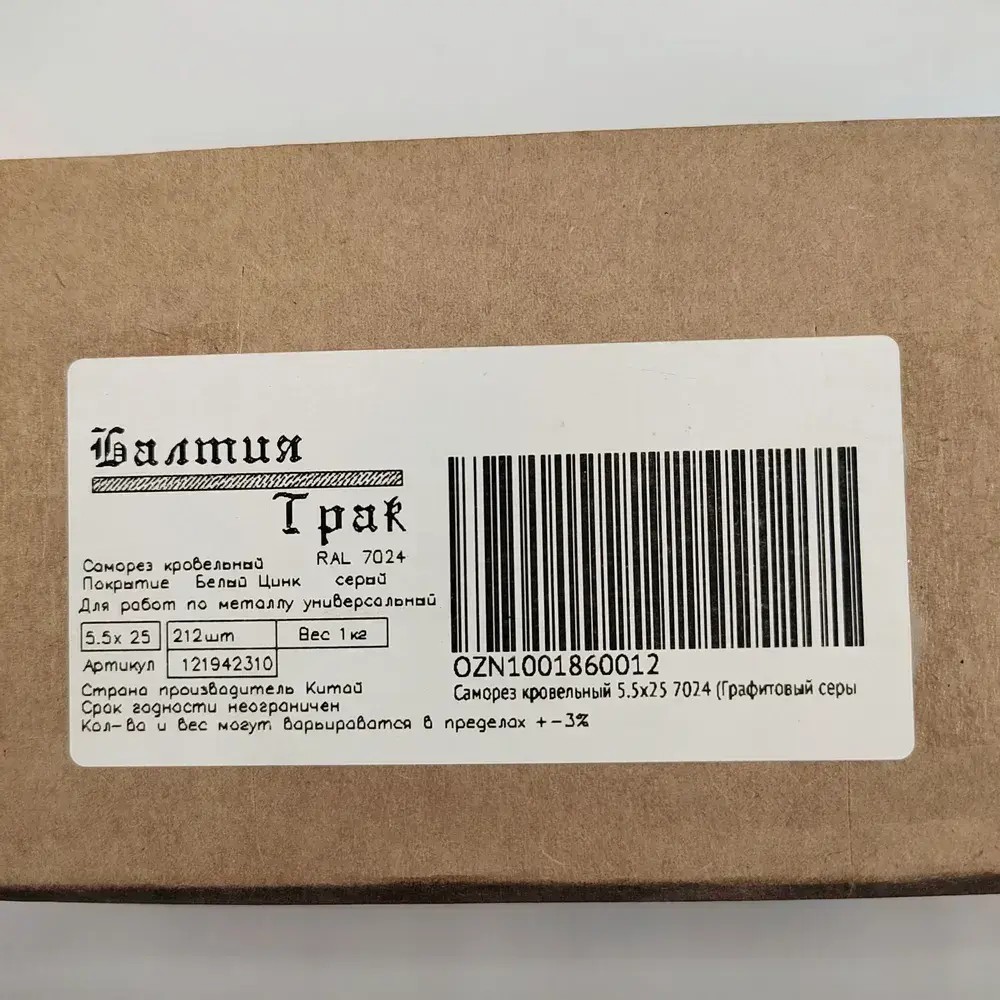 Саморезы кровельные по металлу 5.5х25 RAL 7024 (Графитовый серый) 1кг