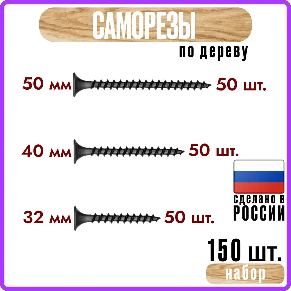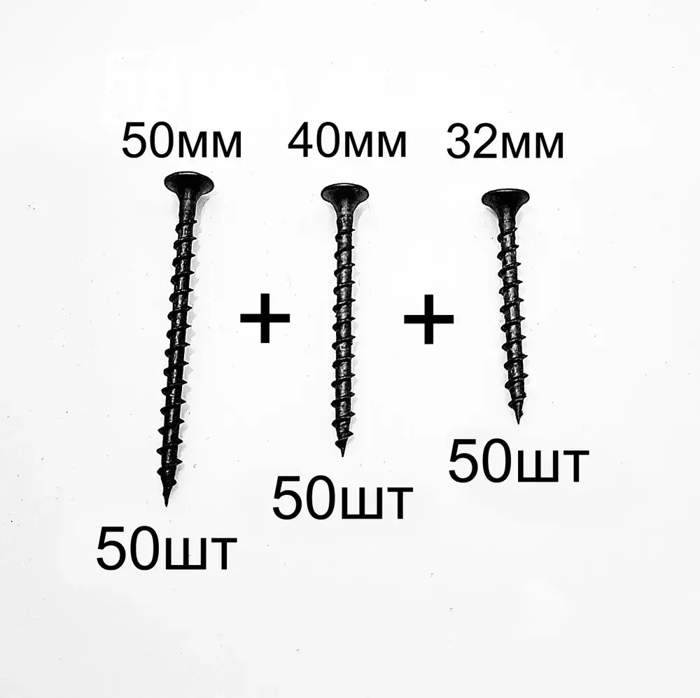 Саморезы по дереву 32, 40, 50мм набор по 50штук черные #3