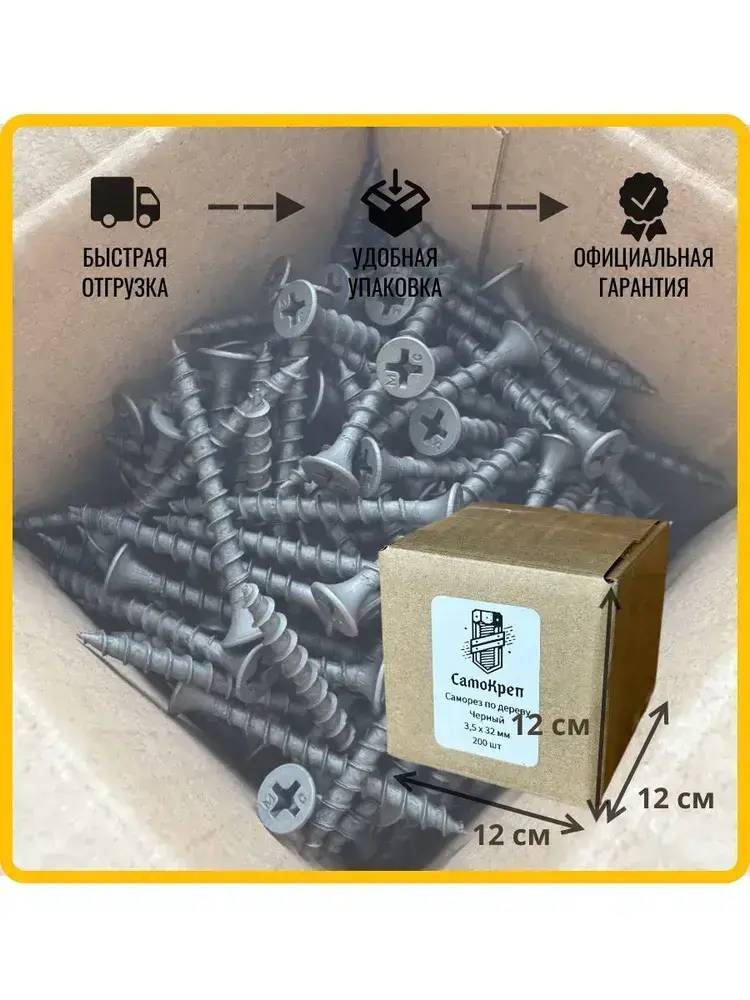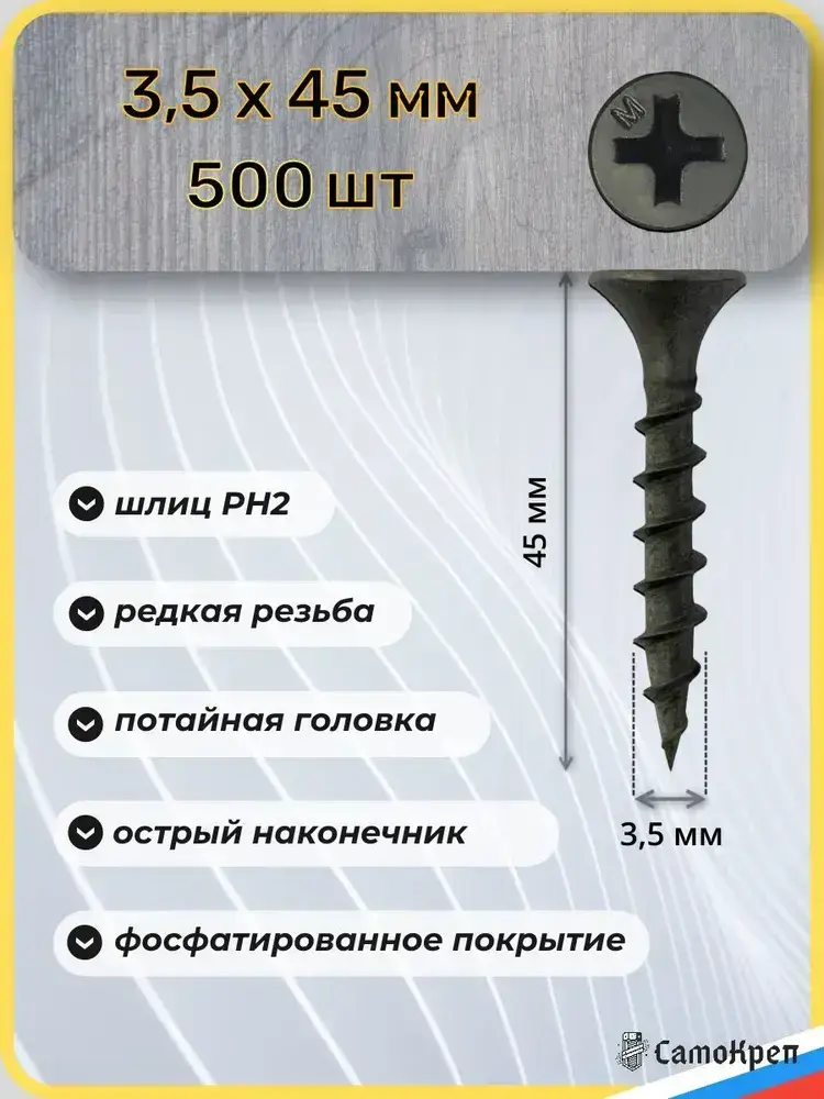 Саморезы по дереву, 3,5 x 45 мм черные 500 шт, крепеж - СамоКреп