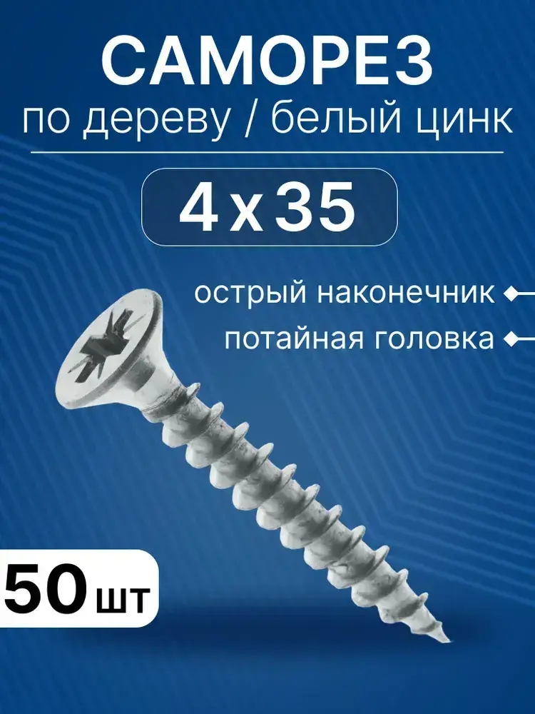 Саморезы по дереву 4х35, белый цинк, набор 50 шт