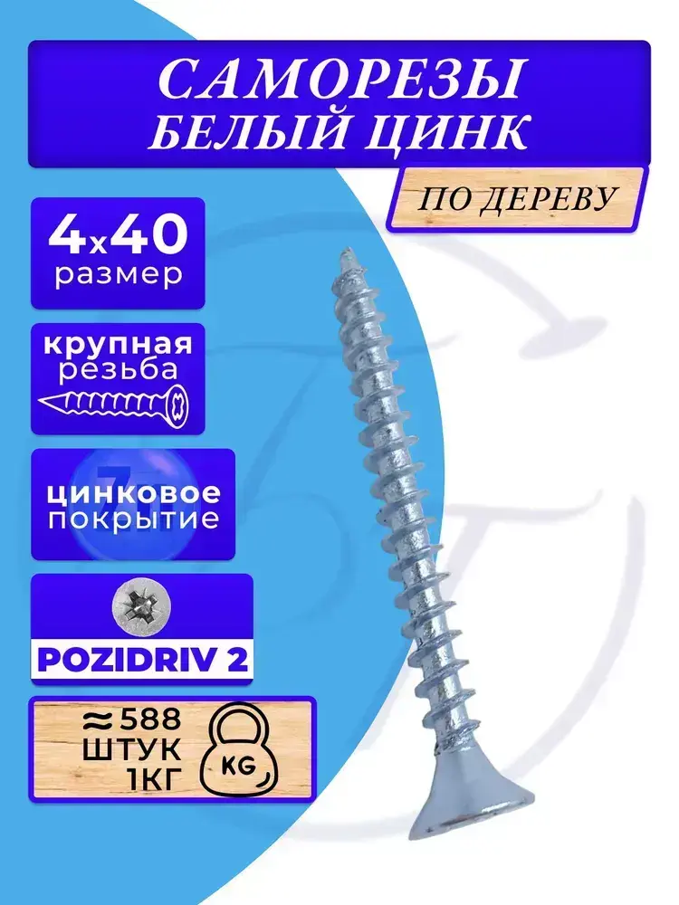 Саморезы по дереву 4х40 белый цинк. 1кг