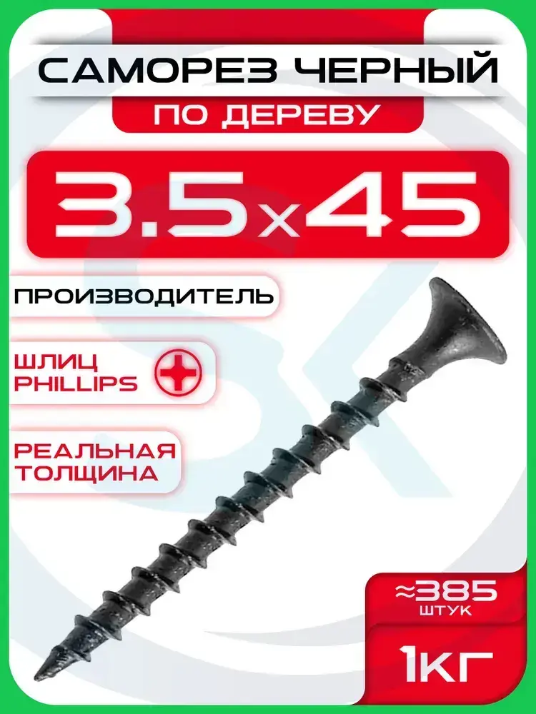 Саморезы по дереву, черные 3,5 х 45 мм (385 шт/1 кг)
