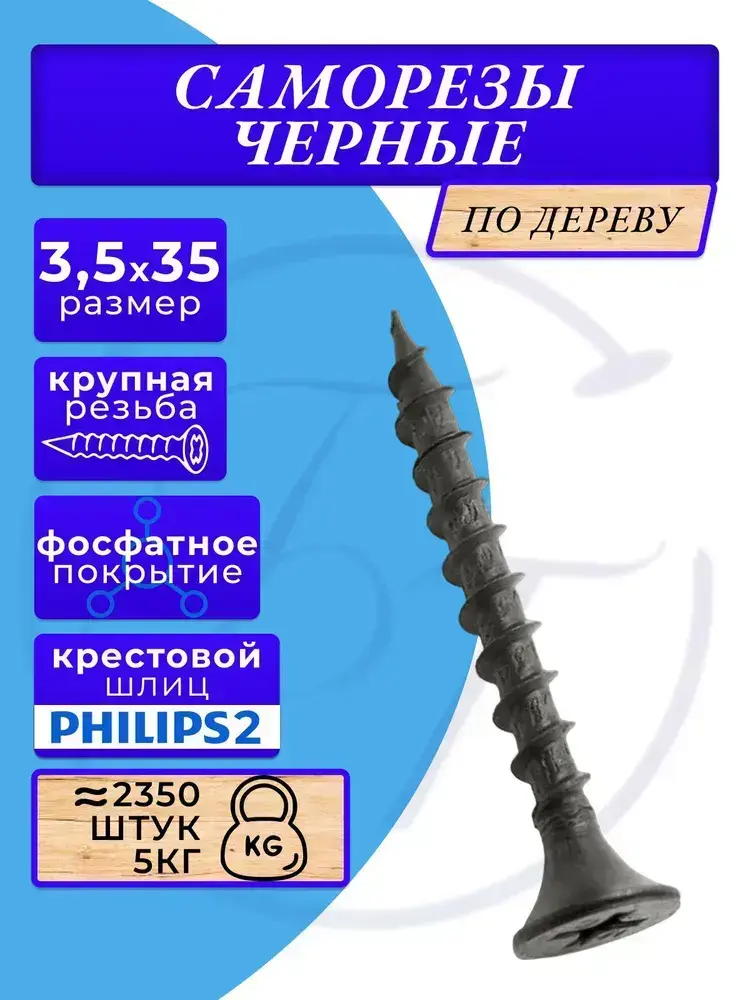 Саморезы по дереву черные 3.5х35 черный 5кг