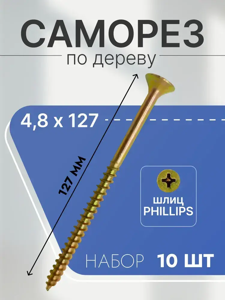 Саморезы по дереву и гипсокартону 4,8х127, цинк, набор 10 шт