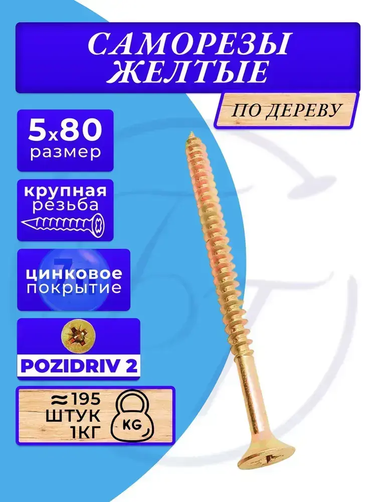 Саморезы по дереву желтые 5х80 жёлтый цинк. 1кг
