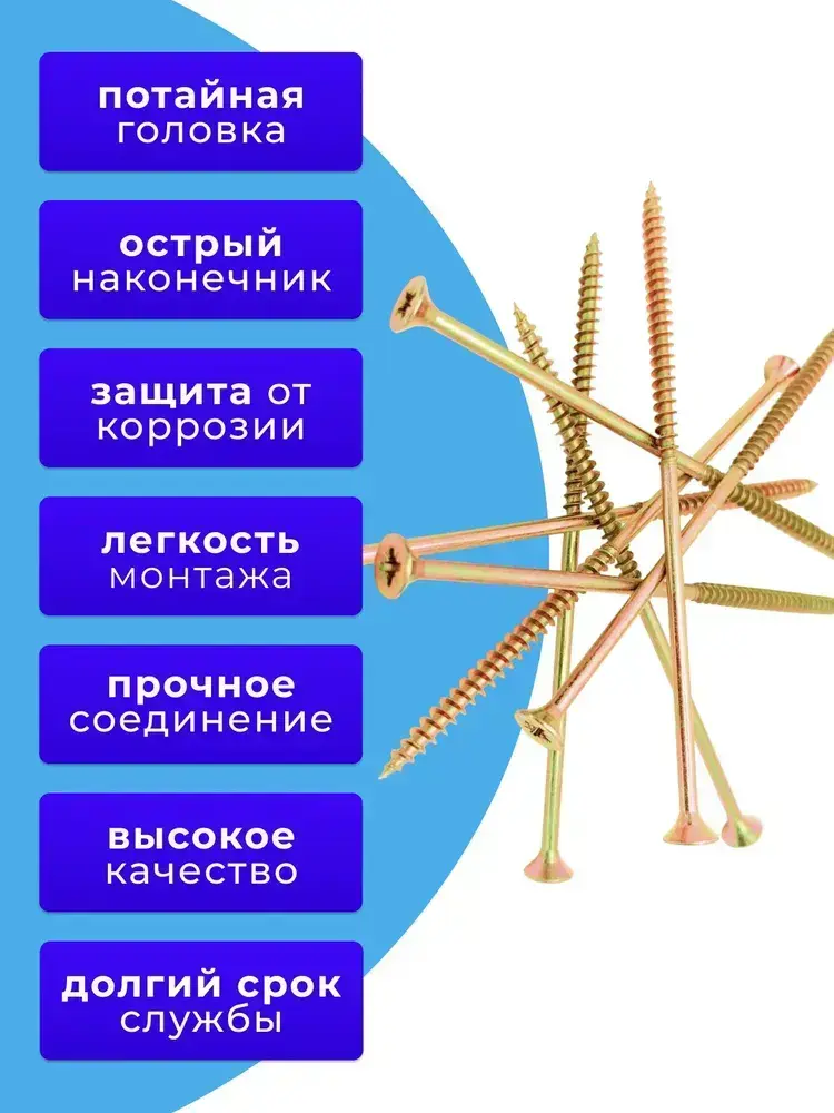 Саморезы по дереву желтые 6х150 жёлтый цинк. 1кг