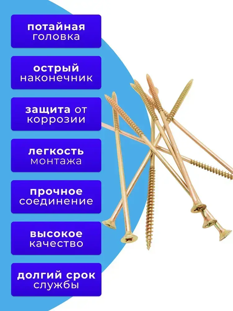 Саморезы по дереву желтые 6х180 жёлтый цинк. 1кг