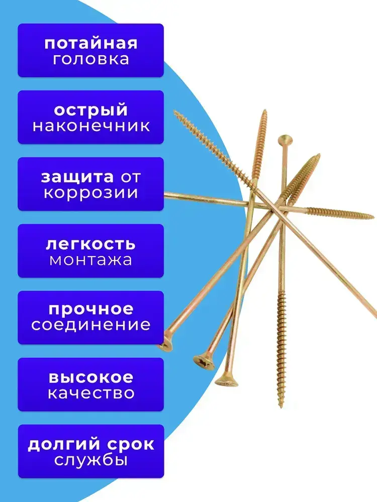 Саморезы по дереву желтые 6х200 жёлтый цинк. 1кг