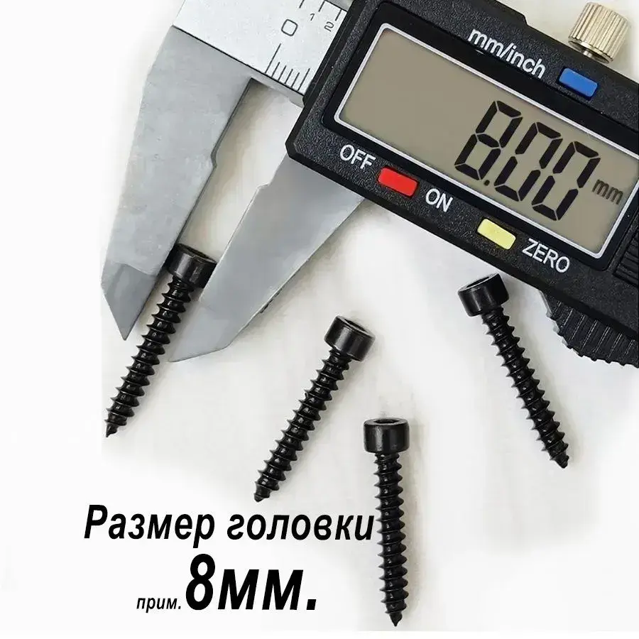 Саморезы под шестигранник 5 х 35 мм черные 16 шт для динамиков акустики автомобильные набор (размер шестигранника 4 мм.) (HEX 4) для колонок твитеров и сабвуфер. Саморез для динамиков
