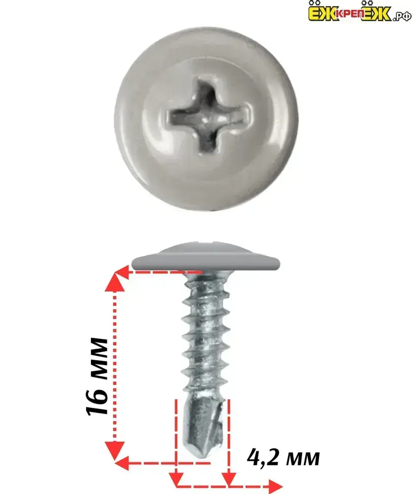 Саморезы прессшайба 4,2х16 мм сверло Серый RAL-7004 (50 шт) ЁЖкрепЁЖ.