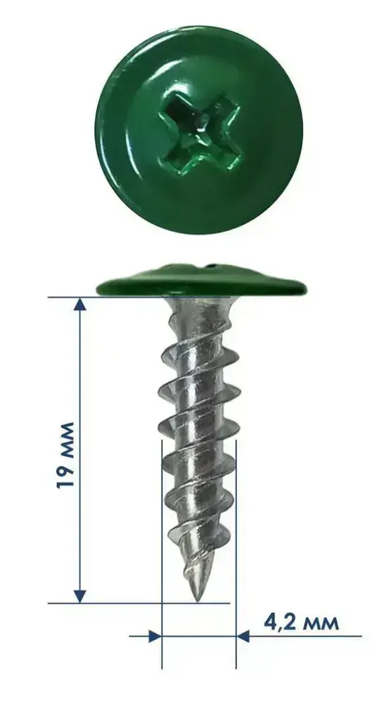 Саморезы прессшайба 4,2х19мм острый Зеленый мох RAL-6005 (100 шт) ЁЖкрепЁЖ.