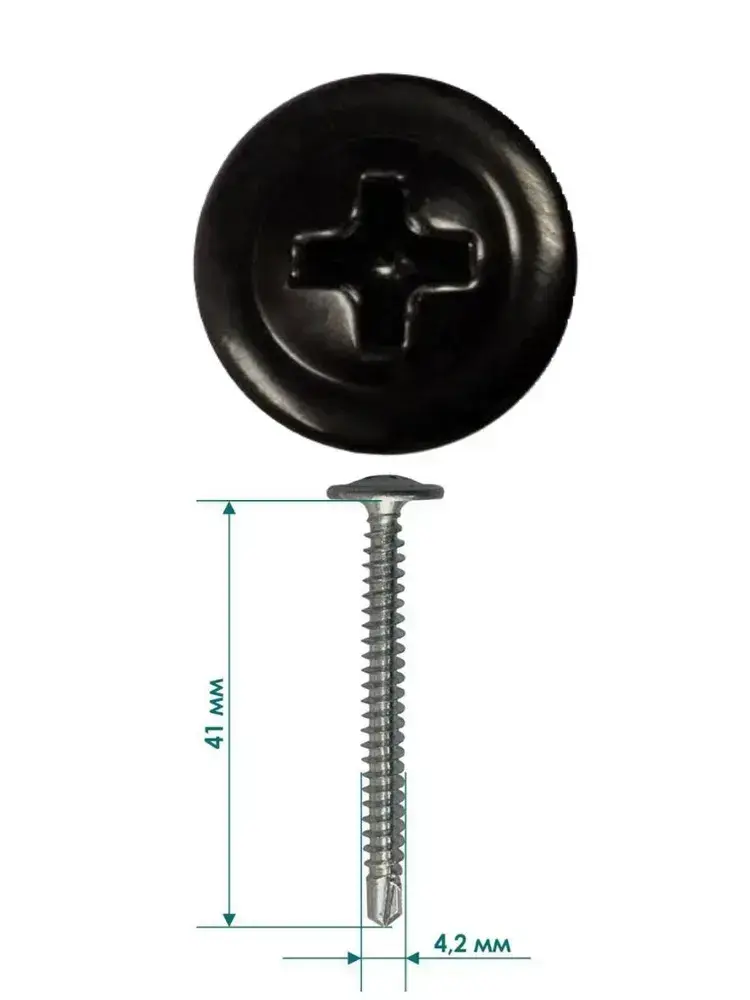 Саморезы прессшайба 4,2х41 мм сверло Черный RAL-9005 (50 шт) ЁЖкрепЁЖ.