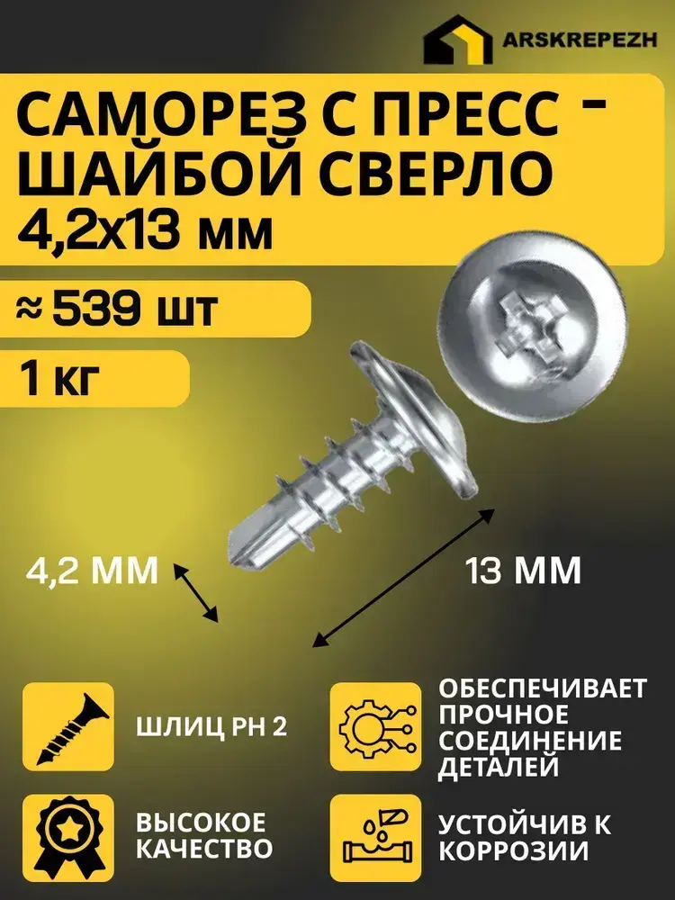 Саморезы с прессшайбой со сверлом 4,2 х 13мм 1 кг