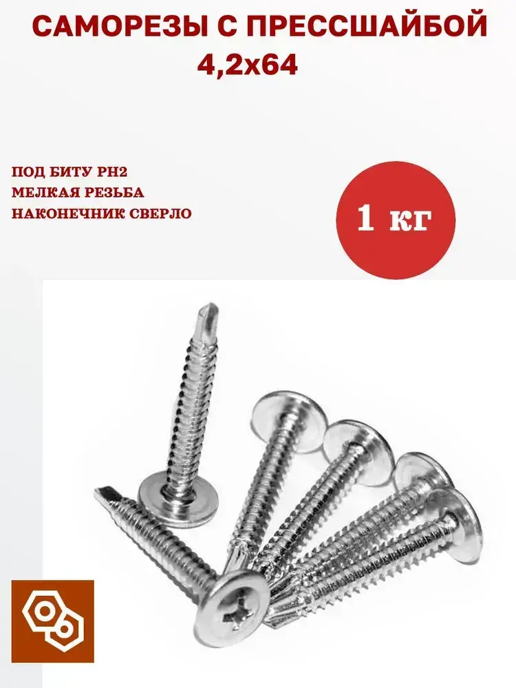 Саморезы с прессшайбой со сверлом 4.2 мм оцинкованный 4,2 х 64 мм 1 кг, 240 шт.