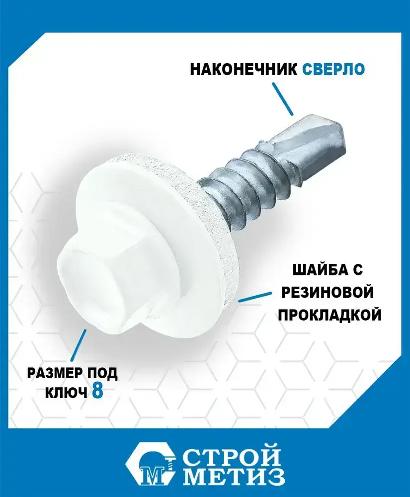 Саморезы Стройметиз кровельные 5.5х19, сталь, RAL 9003, 70 шт.