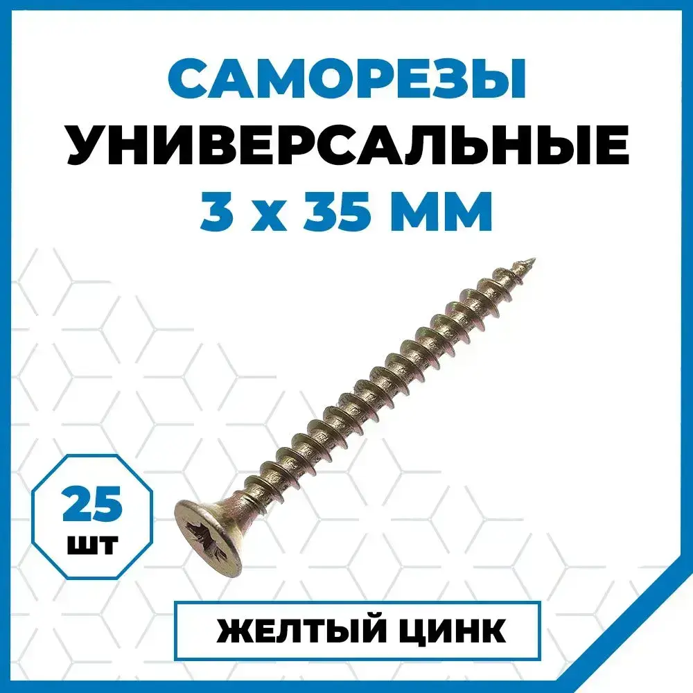 Саморезы Стройметиз универсальные 3х35, сталь, покрытие - желтый цинк, 25 шт.