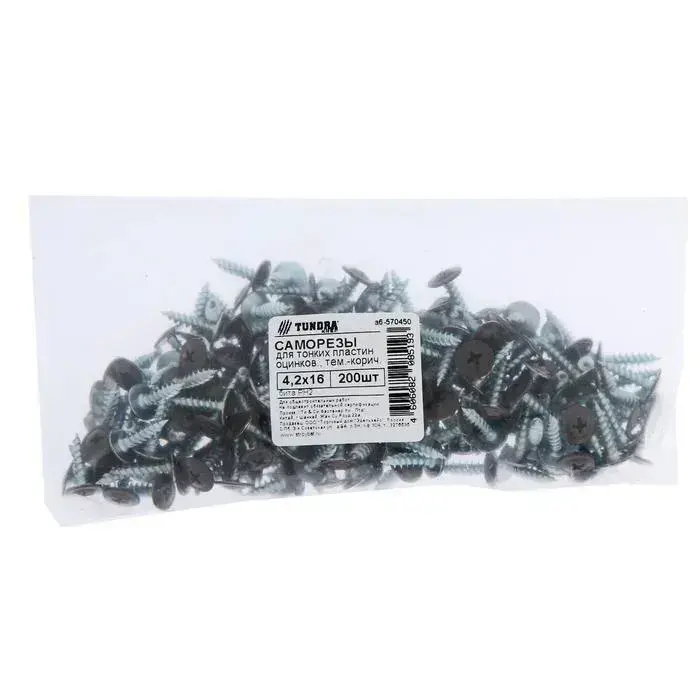 Саморезы TUNDRA для тонк. пластин 4.2x16, цинк/коричневый, 200 шт.
