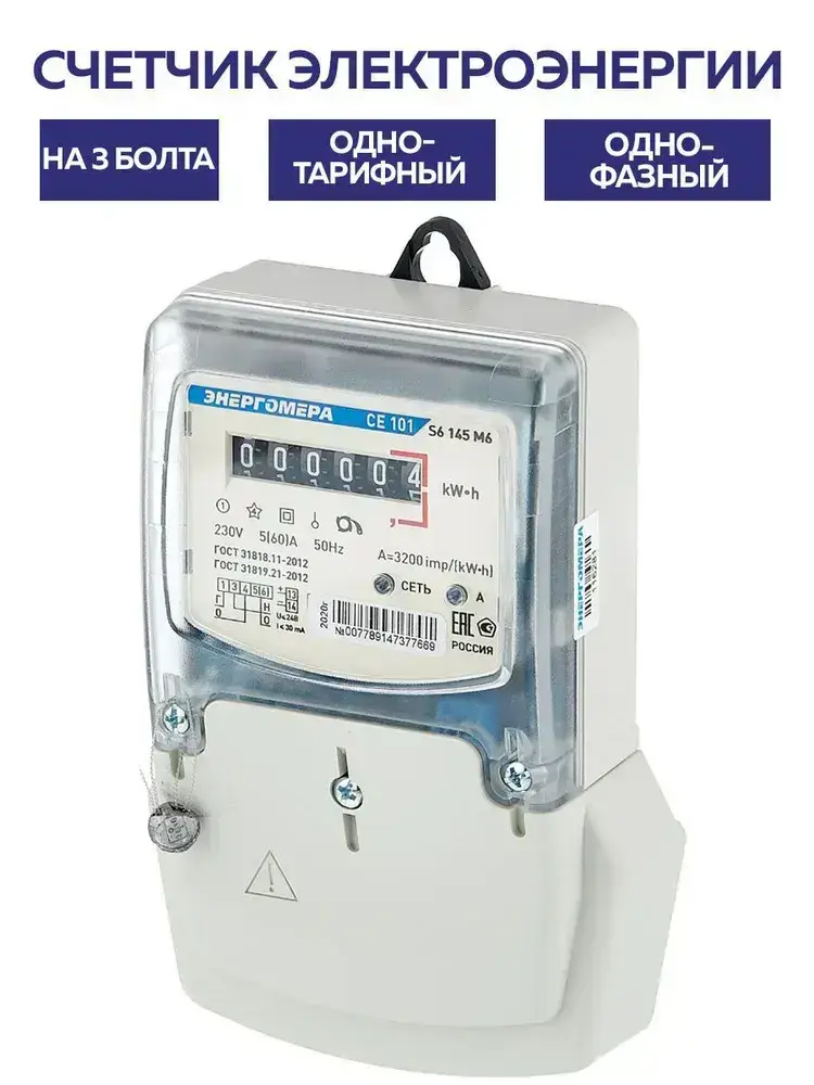Счетчик 1ф 1т СЕ101 S6 145М 5-60А 230В шкафной 2024 год